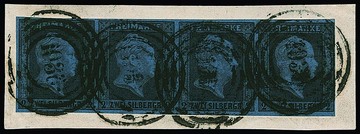 2 Sgr. schw./blau, Kabinett-Dreierstreifen mit NS "1439", sign. Brettl u.a. Mi. 400,-