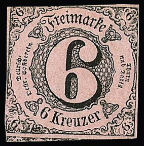 6 Kr. schw./rosa, seltene ungebrauchte Marke mit Originalgummi, oben berührt und links winzige Randaufrauhung, Mi. 1000,-