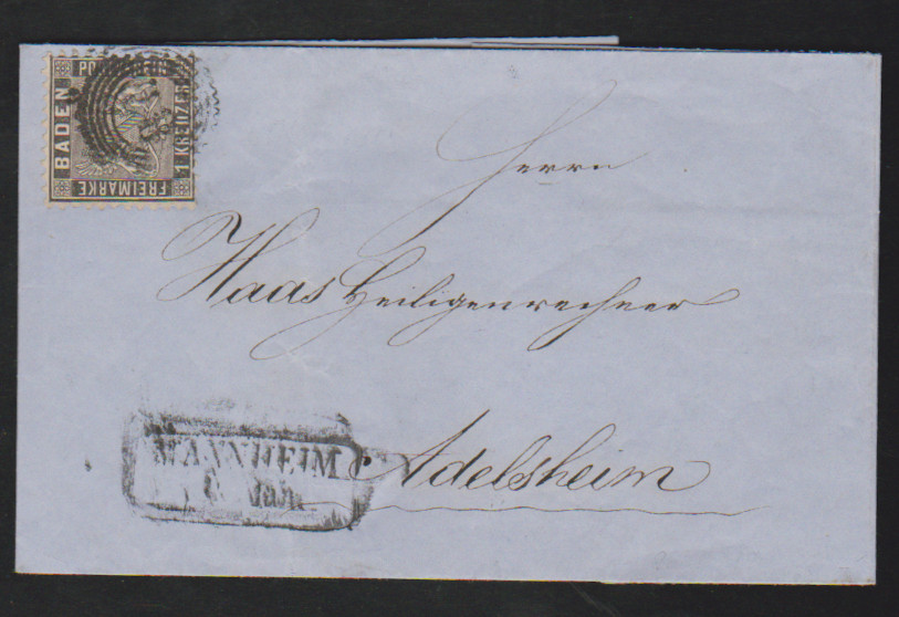 1 Kr. schwarz auf Pracht-Drucksache aus Mannheim