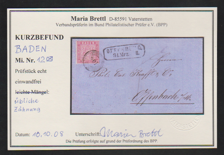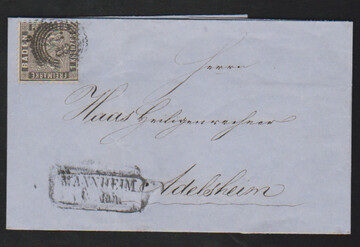 3 Kr. veilchenblau auf Prachtbrief aus Lahr, sign. mit Befund Englert. Mi. 600,-