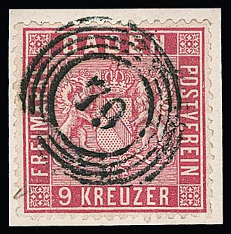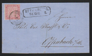 9 Kr. karmin, normal gez., auf Prachtbrief mit NS "104" und Ra2 "Offenburg" nach Offenbach, Fotoexp. Brettl "einwandfrei". Mi. 600,-
