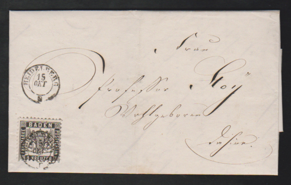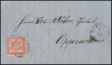 9 Kr. rotbraun auf gef. Prachtbrief mit K2 "Weinheim", Mi. 200,-