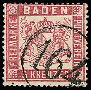 9 Kr. gelbbraun, Kabinettstück mit NS "2" (Achern), Fotoexp. Stegmüller. Mi. 320,-