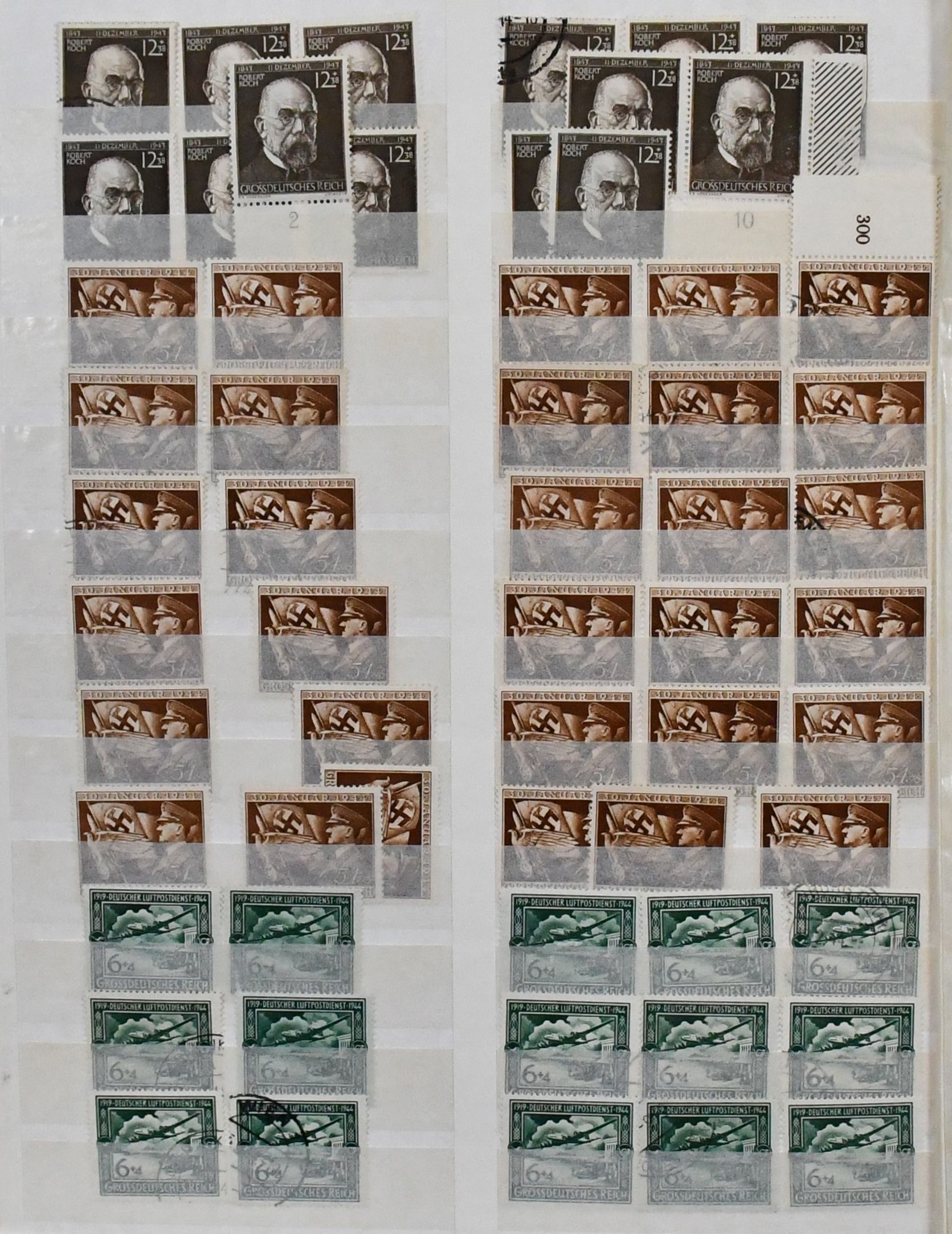 Deutsches Reich, Bestand von rund 5000 Werten der Jahrgänge 1940-1945, in allen Erhaltungen, sehr sortenreich, ohne Hitler-Dauerserie, in drei Klemmbindern. Dabei Nr. 746/47, sehr viele kpl. Sätze, u.a. Nr. 773/78 mehrf., viele WHW-Sätze usw., bis mehrfach Nr. 909/10 postfr. Mi. 6000,-, evtl. Fundgrube für Plattenfehler