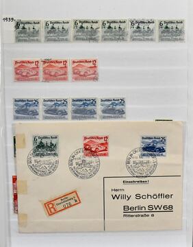 III Reich, 1933/1945, Slg. mit u.a. Block 10 per zwei, je mit SST (Mi. 260,-), Nr. 671 dreimal, je auf Blankobrief etc., bis postfr. Nr. 909/10, im Borek-Binder. Dazu Böhmen u. Mähren kpl. ab postfr. Nr. 1/19