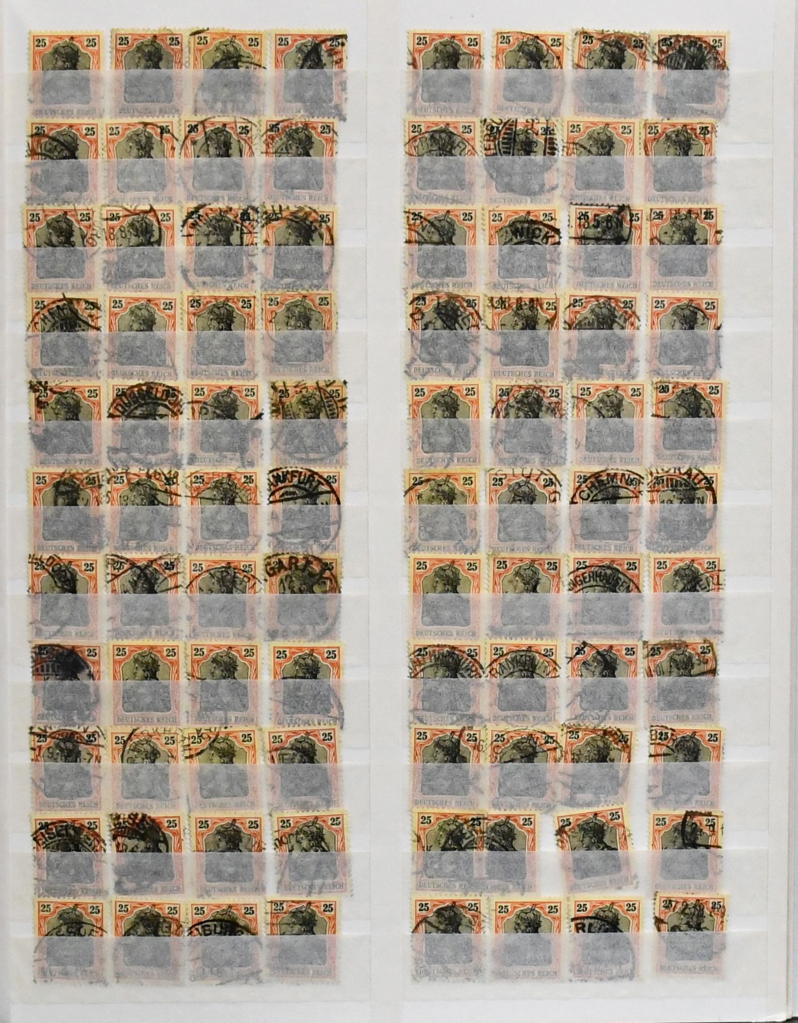 Germania, Ausgabe Nr. 82/97, Partie von etwa 4000 fast durchweg gestempelten Werten, sehr sortenreich, jede Wertstufe mehrfach, inkl. 290 Mark-Werten. Der Michelwert, billigst, beträgt bereits 9000,-. Aufgrund versch. Typen und vieler Farben dieser Ausgabe, enorme Fundgrube