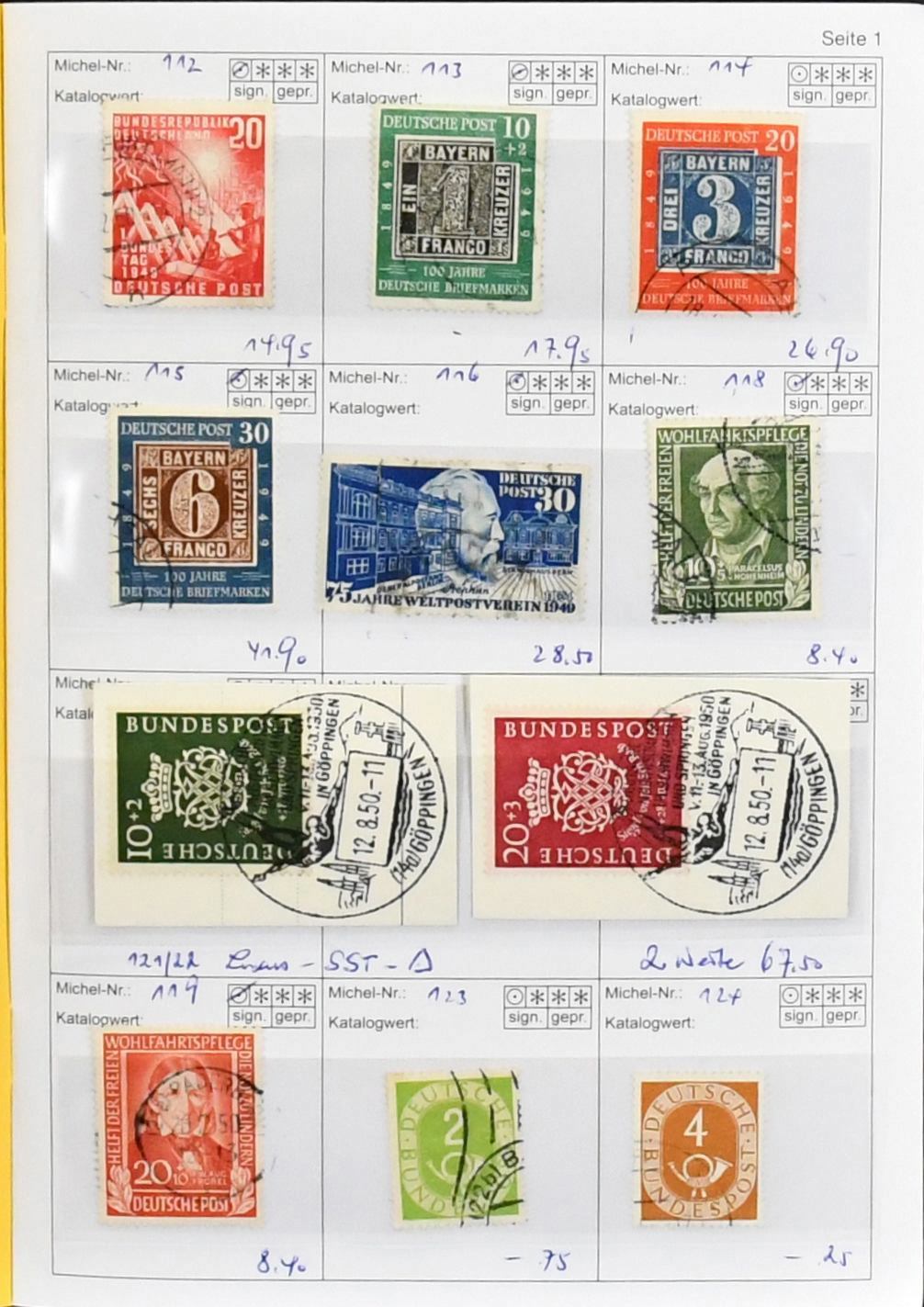Bund, 1949-1956, ab Nr. 112 augenscheinlich kpl. gest. Slg. der ersten Jahre, weniges auch dopp., zusätzlich Heuss lumo kpl. ("Braunschweig"-Stempel von Borek), Nr. 117-20 u. 121-22 auf Luxusbriefstücken etc., Los 8878 der 217. Auktion, alter Ausruf 250,-