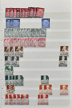 Deutsches Reich, III. Reich, Partie von etwa 2400 fast durchweg gestempelten Werten ab 1934, auf Albenblättern. Dabei viele kpl. Sätze, u.a. Nr. 609/16, WHW-Sätze, 695/99, 773/78 mehrf. usw. Dazu einige Blöcke, z.B. Bl. 6 postfr. (Mi. 140,-), Bl. 7/11 kpl., teils mehrf., u.a. Bl. 9 gepr. und ungebr. Mi. rund 4000,-, Los 7517 der 217. Auktion, alter Ausruf 300,-