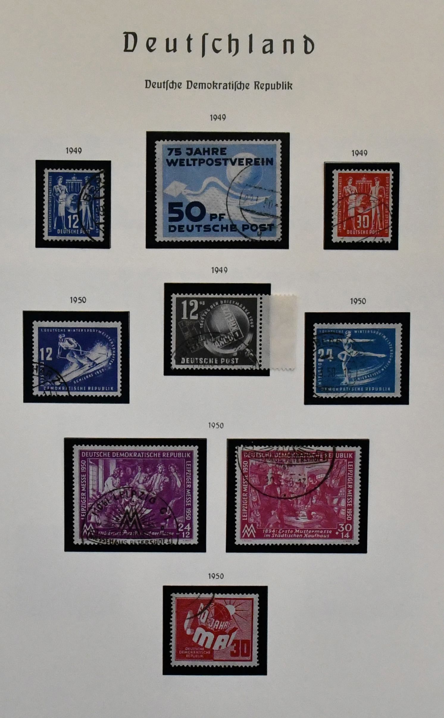 DDR, 1949-1990, Bestand in sieben sehr gut gefüllten Vordruckalben, anfangs gestempelt, später gemischte Erhaltung. Dabei Debria-Block, Akademie, Chin. Freundschaft usw. Mi. ca. 3500,-, Los 7431 der 211. Auktion, alter Ausruf 250,-