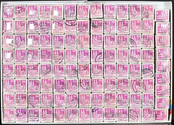 Bizone, 90 Pfg. Bauten, Mi.-Nr. 96, rund 10500 gestempelte Werte, sauber gebündelt, Fundgrube! Los 7881 der 219. Auktion, alter Ausruf 150,-