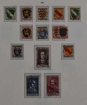 Französische Zone, gestempelte Slg. aller Gebiete, dabei Baden Nr. 37, 47/53, Rheinland-Pfalz Nr. 46/52, Württemberg Nr. 28/39 usw., auf Vordrucken. Mi. rund 1500,-, dazu Württemberg Rotkreuz-Satz mit Eckstempeln unberechnet, Los 6154 der 206. Auktion, alter Ausruf 200,-