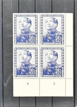 DDR, postfrische (Hauptwert, etwas gest.) Partie der 50er Jahre, dabei 50 Pfg. Chinesen im Eckrand-Viererblock, gepr., Engels-Block mit Einzelmarken, Markenheftchen usw., Los 8555 der 217. Auktion, alter Ausruf 180,-