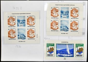 Europa-Union, "Nebengebiete", Sammlungsteil mit postfr. Slg. KSZE aus 1973-80 mit seltenen Ausgaben wie Ungarn Bl. 99A/B, 103B, 113B, Bulgarien Bl. 53B, geschnittener Kleinbogensatz CSSR Nr. 2407-9 einzeln und im Großbogen (!), Mitläufer 1974-82, Norden etc., Los 8432 der 219. Auktion, alter Ausruf 150,-