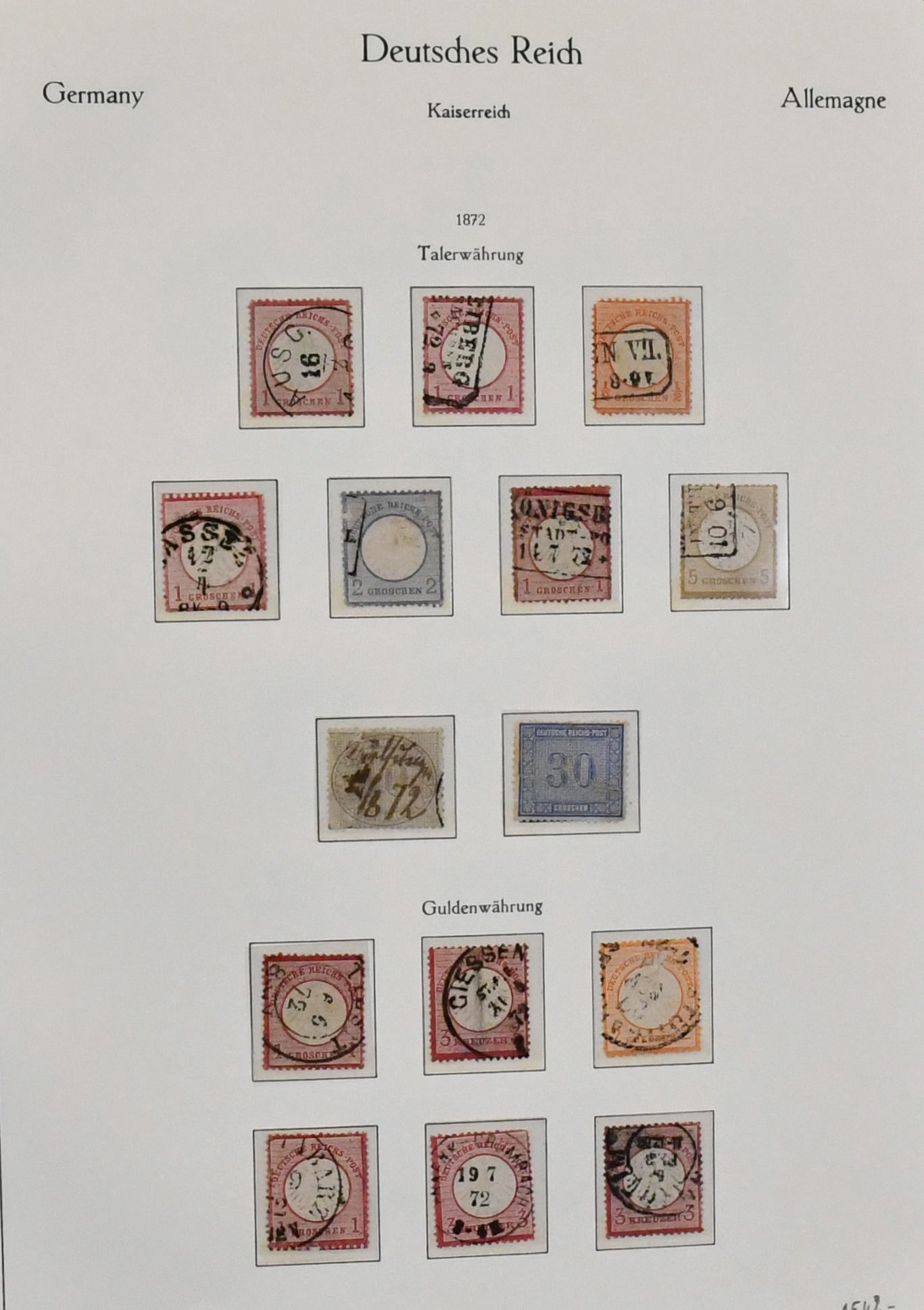 Deutsches Reich, 1872-1945, Slg. in untersch. Erhaltung im KABE-Vordruckalbum, ab Brustschilde (u.a. Nr. 4 mit seltener Entwertung durch K1 "AUSG."), Nr. 12/13, ab etwa 1900, ohne Blöcke und Zeppeline, ziemlich kpl. Mi. rund 7000,-, Los 7376 der 217. Auktion, alter Ausruf 400,-