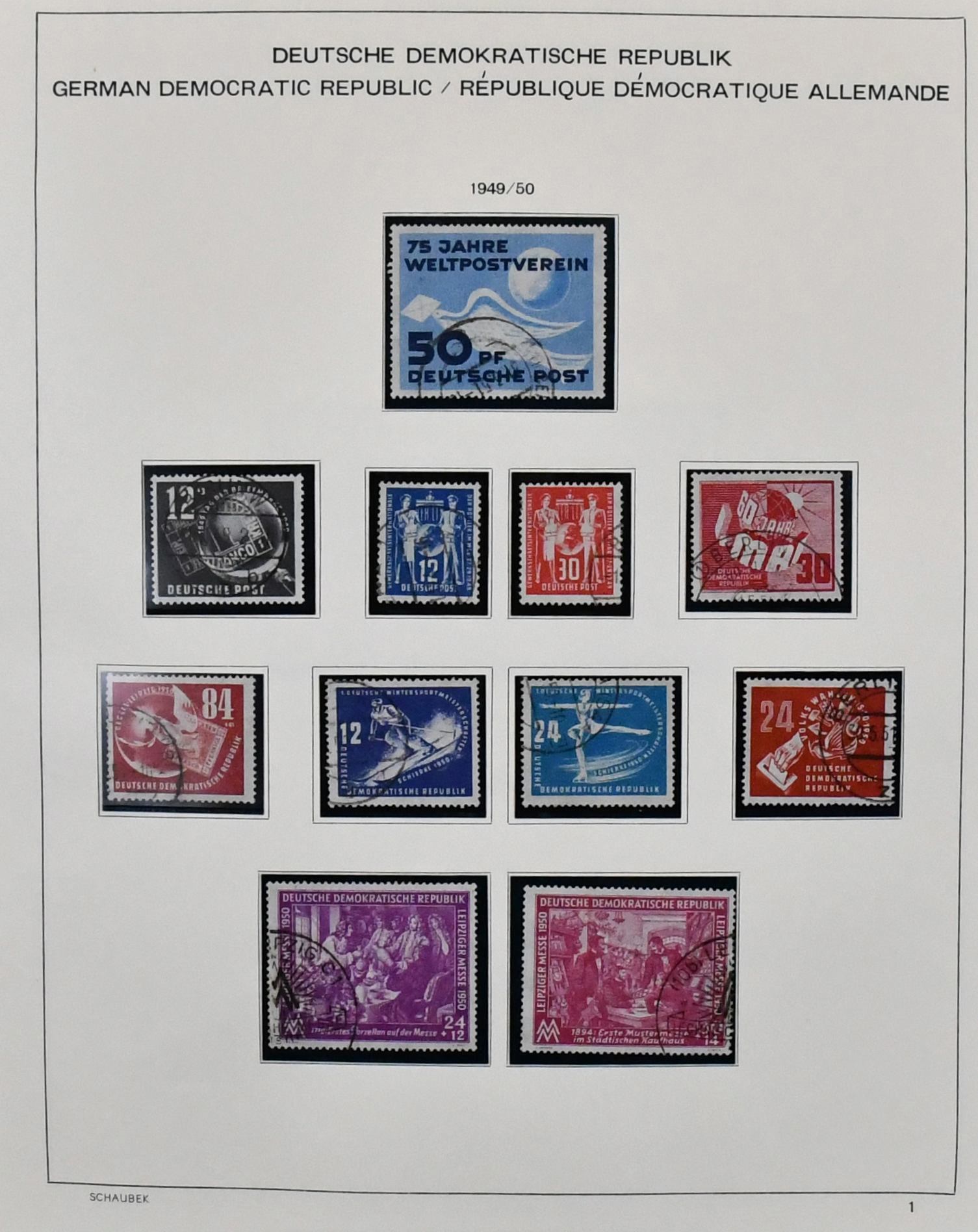 DDR, 1949/1990, gest. Slg., ohne Bl. 8/9A/B und einige unbedeutende Werte, nahezu kpl., dabei Nr. 261/70, 286/88, 327/41, Bl. 7, Bl. 10/19 usw., in drei dicken Schaubek-Vordruckalben. Dazu einige Zusammendrucke. Mi. 4600,-, Los 7537 der 219. Auktion, alter Ausruf 350,-