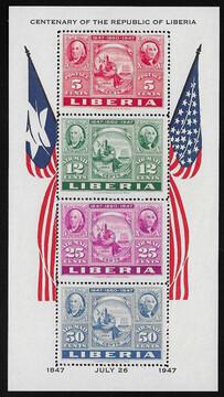 Liberia, 1947, postfrisches Blockpaar (Mi. 350,-), sowie das Blockpaar nochmals mit "Specimen"-Aufdruck