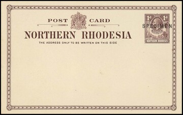 Nordrhodesien, 1910 (ca.), Ganzsachenkarte 1 P. braun, Edward, mit Aufdruck "SPECIMEN"