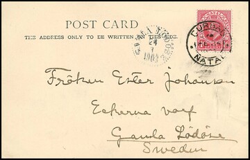 Natal, 1903, 1 P. rosa einzeln auf seltener Postkarte (kl. Knitterspuren) von Durban nach Schweden (!)