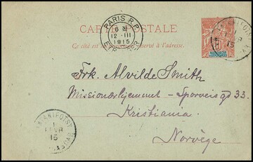 Madagaskar, 1915, Ganzsachenkarte 10 C. von Antanifotsy nach Christiania/Norwegen, seltene Postverbindung!