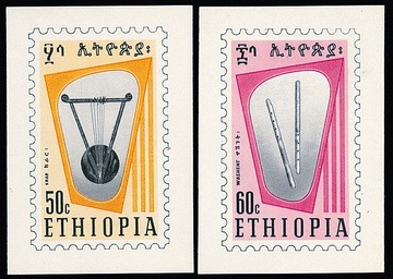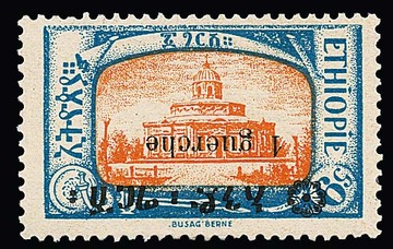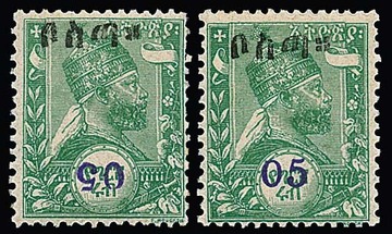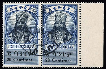 Haile Selassi in Randpaaren, dabei je ein Wert mit Fehldruck "CENTAMES" in der äthiop. Inschrift, mit Ersttagsstempel, selten und im Michel ohne Preis
