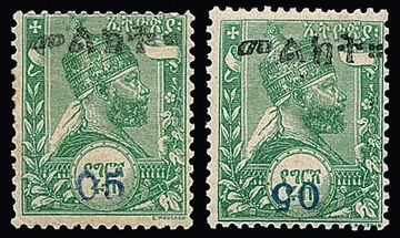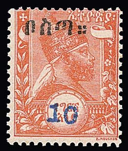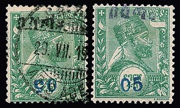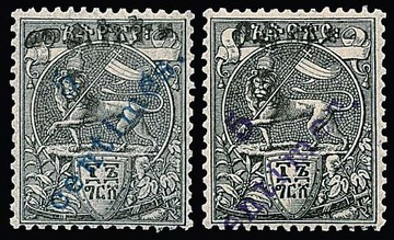 5 C. a. 16 G., das Harar-Provisorium in beiden Typen (auf "Bosta" bzw. "Malekt") je ungebraucht, Mi. 440,-