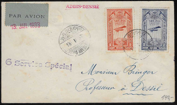 1 und 2 G. Flugpost auf seltenem Lupo-Brief Addis-Dessie, "6. Service Special", 13. Jan. 1933, leicht tropisch
