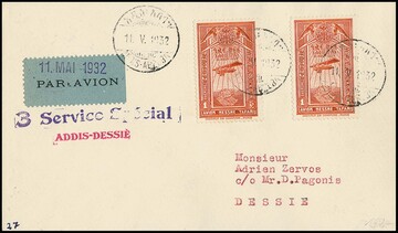 1 G. Flugpost per zwei auf seltenem Flugpostbrief Addis-Dessie, 11. Mai 1932 ("3. Service Special")