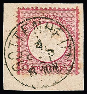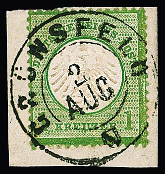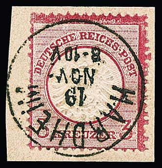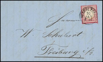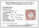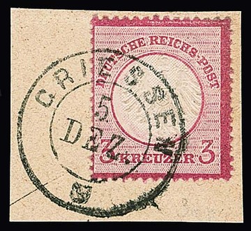 "Helmstedt", seltener nachverw. K1 des spät eröffneten Postortes auf Postschein 1872, sowie auf loser 2 Kr. Brustschild (Bugspur), je Fotoexp. Krug
