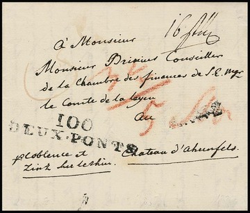 "Zweibrücken", 1800/1802, je L2 "100 DEUX. PONTS" bzw. "P.100.P. DEUX. PONTS" auf zwei sauberen Briefen mit Inhalt