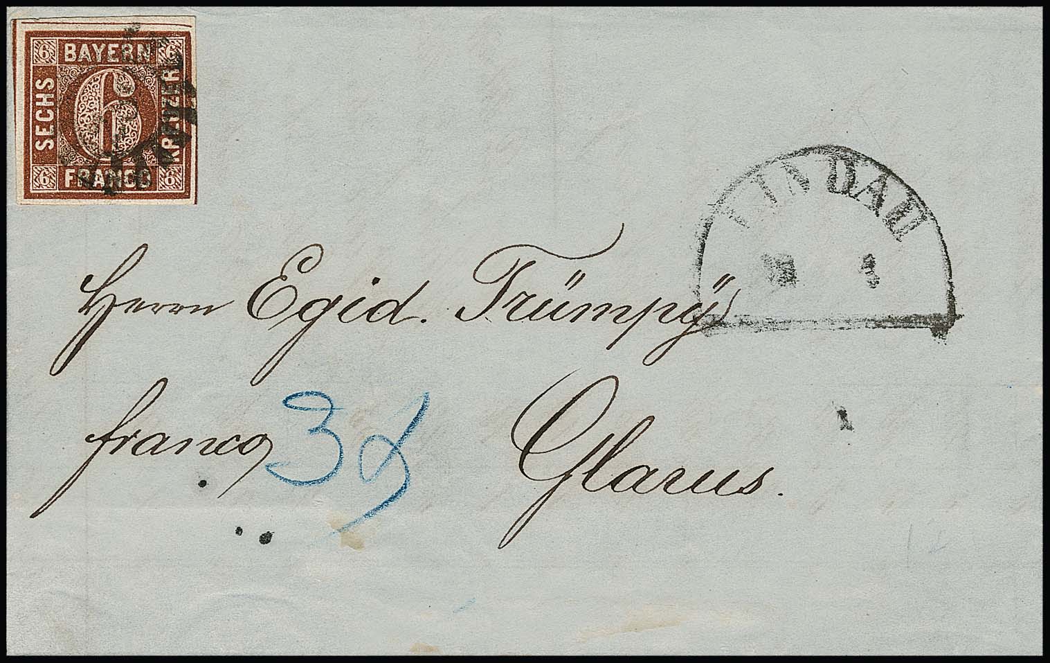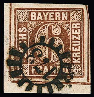 6 Kr. braun, Type I, kleines Kabinettbriefstück mit HK von Mindelheim, sign. Sem. Mi. 300,-
