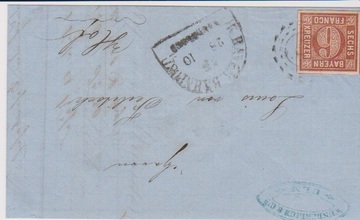 6 Kr. braun auf Prachtbrief mit zartem oMR "BP", Bahnpost-HK nebengesetzt, Absenderstempel aus Ulm, nach Hof
