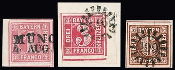 Drei Briefstücke je mit Bahnpost-HK, "Lind.-Agsb.", "Hof-München", sowie "München-Bamberg", dazu lose 1 Kr. mit Stegstempel "K. BAYR. BAHNPOST" aus der Pfalz