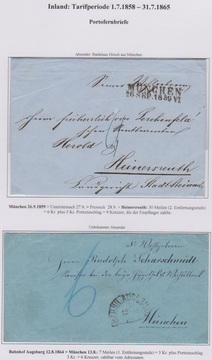 Drei Portofernbriefe, einmal Taxe "6" Kr. aus Augsburg Bhf. zweimal "9" Kr. aus Nürnberg und München