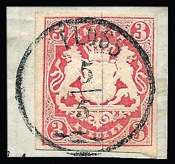 3 Kr. rosa, breitrandiges Kabinettstück mit besserem Fingerhut-K1 von Gefrees, dito auf gez. 3 Kr.