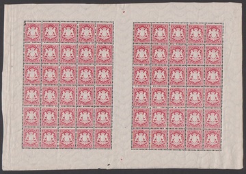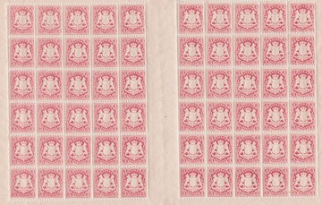 3 Kr. rosa, kpl. postfrischer Bogen zu 60 Exemplaren mit den sechs Zwischenstegpaaren, u.a. auf Feld 37 Plattenfehler IV