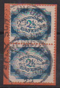 2 1/2 Mk. Bayern-Abschied im senkrechten Paar auf Briefstück, sign. Infla. Mi. 180,-