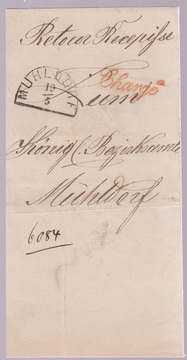 "Mühldorf", HK 1869 auf Charge-Retour-Recepisse, unfrankiert (da Schreiben des Bezirksamtes) nach Micheldorf