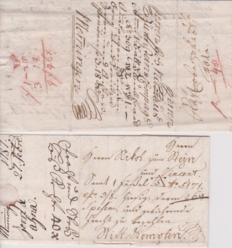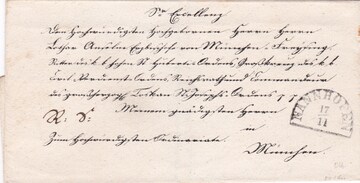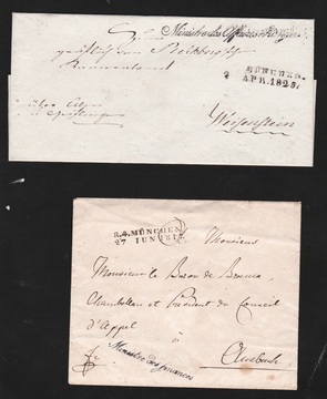 "München", 1812/25, je L2 und versch. Minister-Franchise-L1 (Finanzen) auf zwei Briefen