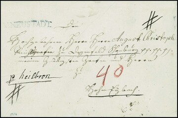 "Neustadt", (1785), klarer L1 "V. NEUSTADT" auf dekor. Charge-Briefhülle nach Hohen-Eybach