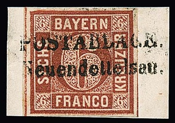 "Neuendettelsau", Postablage-L2 voll auf Kabinettbriefstück 6 Kr. braun, sowie auf zwei losen Werten