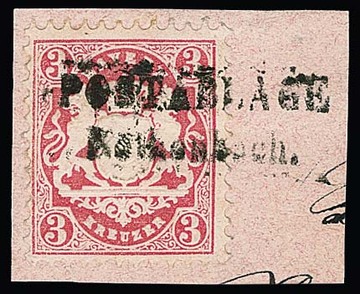 "Schwarzenfeld", seltener kleiner blauer Grotesk-K1 klar auf 3 Kr. (kl. Eckbug)
