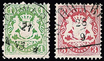"Schwabing", besserer HK auf 3 Kr., sowie K1 auf 1 Kr. grün und 9 Kr. braun