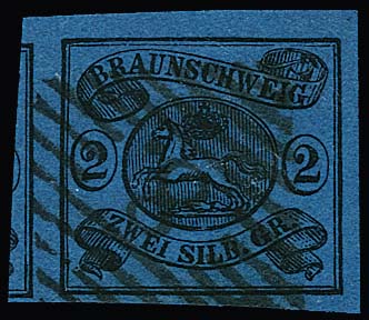 2 Sgr. schw./blau, überrandiges Luxusstück mit NS "8" (Braunschweig), sign. Köhler