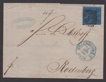 2 Sgr. schw./blau auf Prachtbrief von Braunschweig (NS "8") 1862 nach Rodenberg/Hessen-Kassel