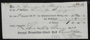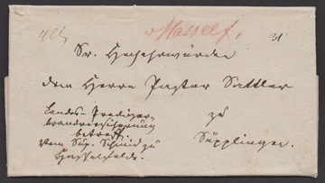 "Hasselfelde", 1834, hs. Rötelaufgabe auf Brief mit Inhalt (rs. Landbestellung quittiert)