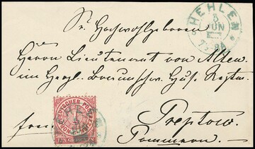 "Naensen", nachverw. K2 auf drei versch. Briefstücken, 1 Gr. NDP (Kerbe), sowie 1 Gr. Brustschild (Fotoexp. Hennies) und 10 Pfg. (Luxus!)