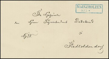 "Mainzholzen", (1860), seltener blauer Ra2 klar auf sehr sauberem Brief