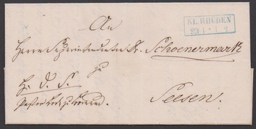 "Klein-Rhüden", blauer K2 mit hs. Datum "13.6.1853" auf Brief, sowie blauer Ra2 auf Brief 1857