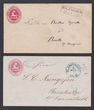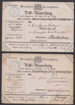 Zwei Dienst-Postanweisungen 1866/67 in militärischer Verwendung je von Braunschweig (K2) an einen Leutnant bzw. Feldwebel