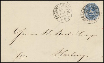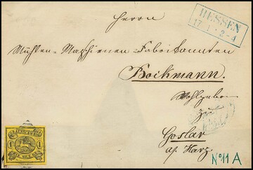 "18" nebst Ra2 "Halle a.d. Weser" mit hs. geänderter Uhrzeit auf Couvert (rechts leicht randfleckig und rs. fehlt die obere Klappe teilweise) mit Prachtstück 1 Sgr.